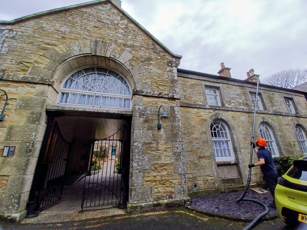 Super heated steam Cleaning – Specialist equipment that sanitises surfaces, eliminating mould, algae, and moss, without the use of chemicals. This is also a safe method for use on delicate stonework and listed buildings, ensuring a safe and effective clean.